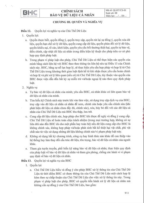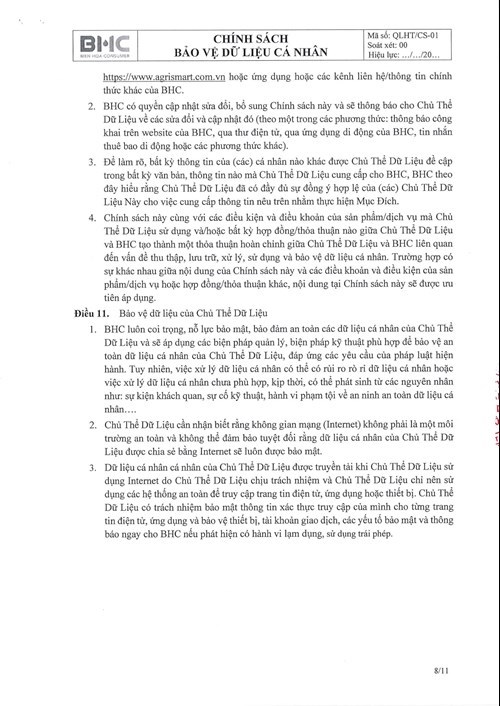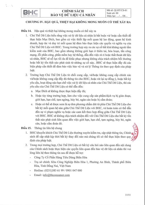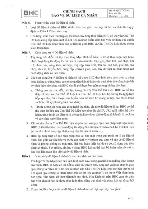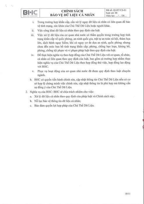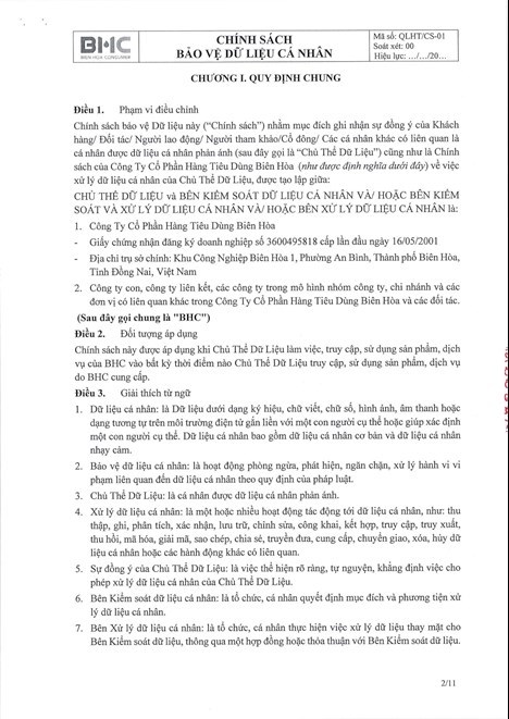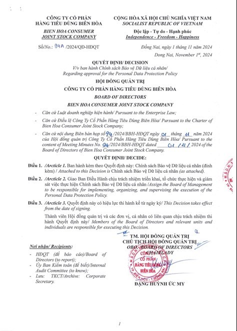 Ban hành chính sách bảo vệ dữ liệu cá nhân của Công ty Cổ phần Hàng tiêu dùng Biên Hòa
