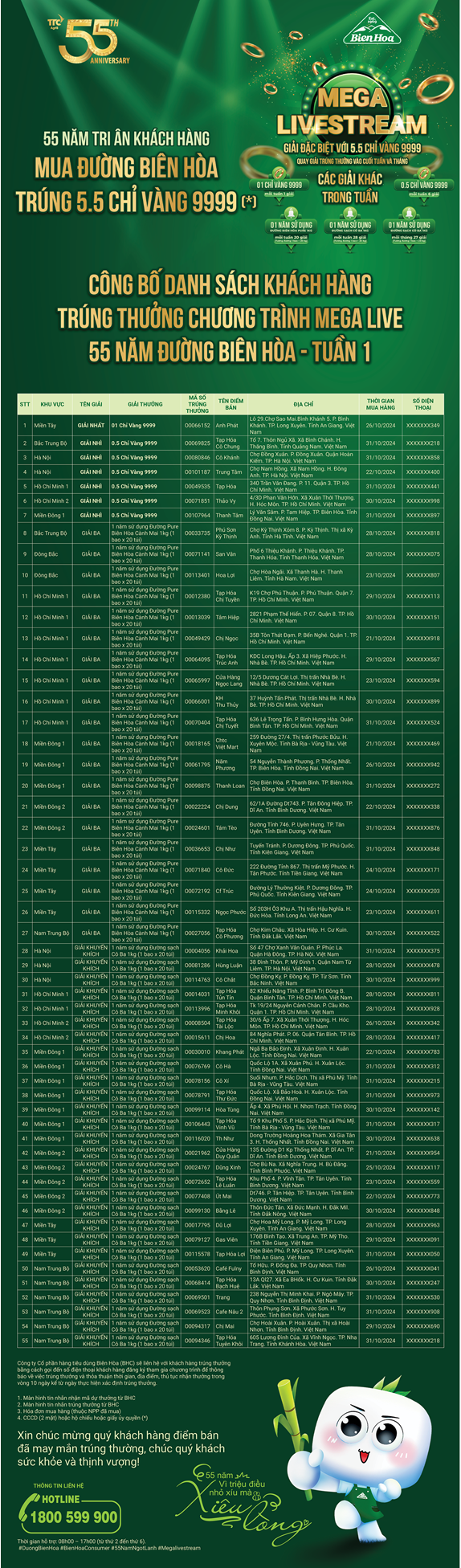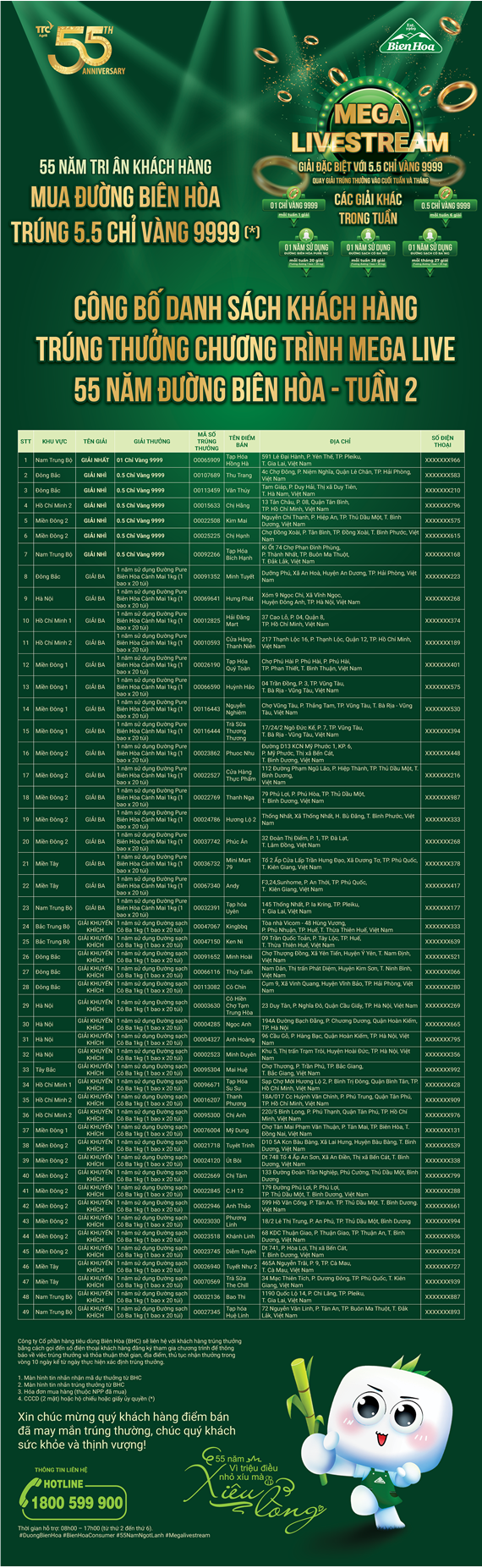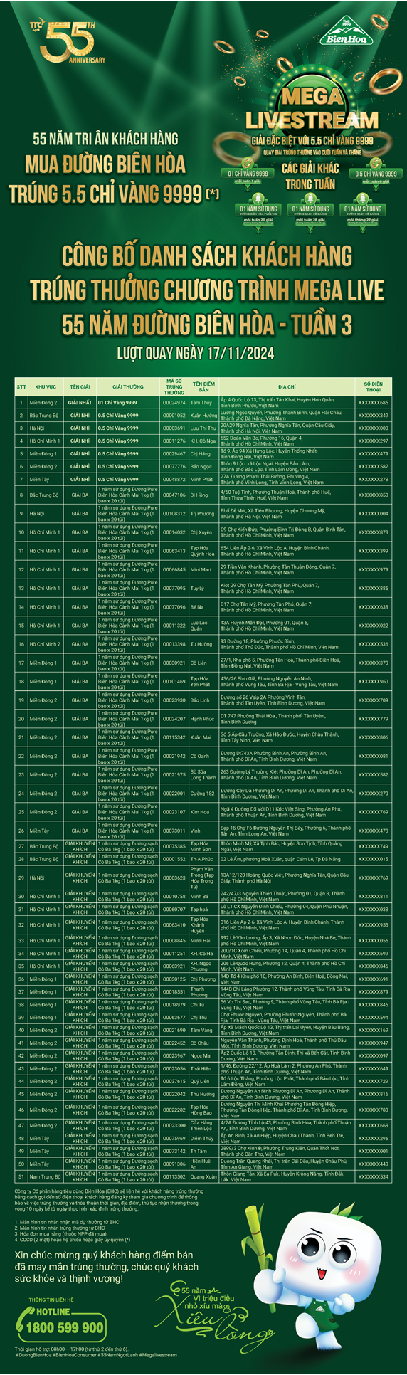 THÔNG BÁO MEGALIVE - BIÊN HÒA 55 NĂM TRI ÂN KHÁCH HÀNG THÁNG 11
