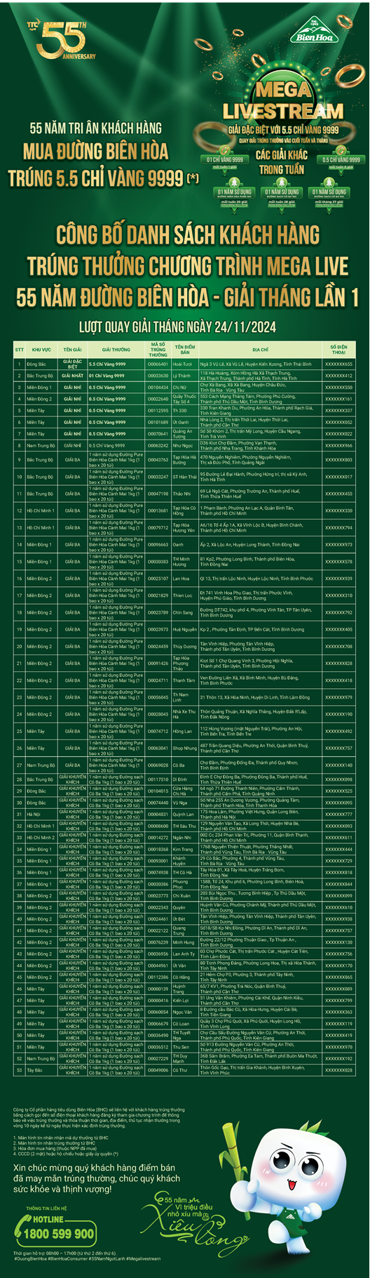 THÔNG BÁO MEGALIVE - BIÊN HÒA 55 NĂM TRI ÂN KHÁCH HÀNG