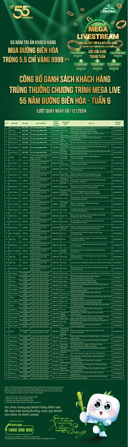 THÔNG BÁO MEGALIVE - BIÊN HÒA 55 NĂM TRI ÂN KHÁCH HÀNG THÁNG 12